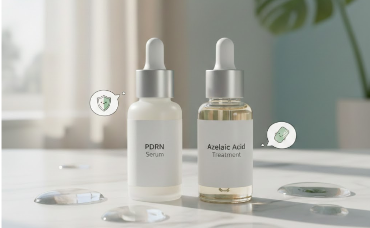美容成分として注目を集めるPDRNとアゼライン酸。この二つを併用する最大の狙いは、アゼライン酸による角質ケアや抗炎症という「攻め」のプロセスと、PDRNによる皮膚のコンディション維持という「守り」を組み合わせる点にあります。